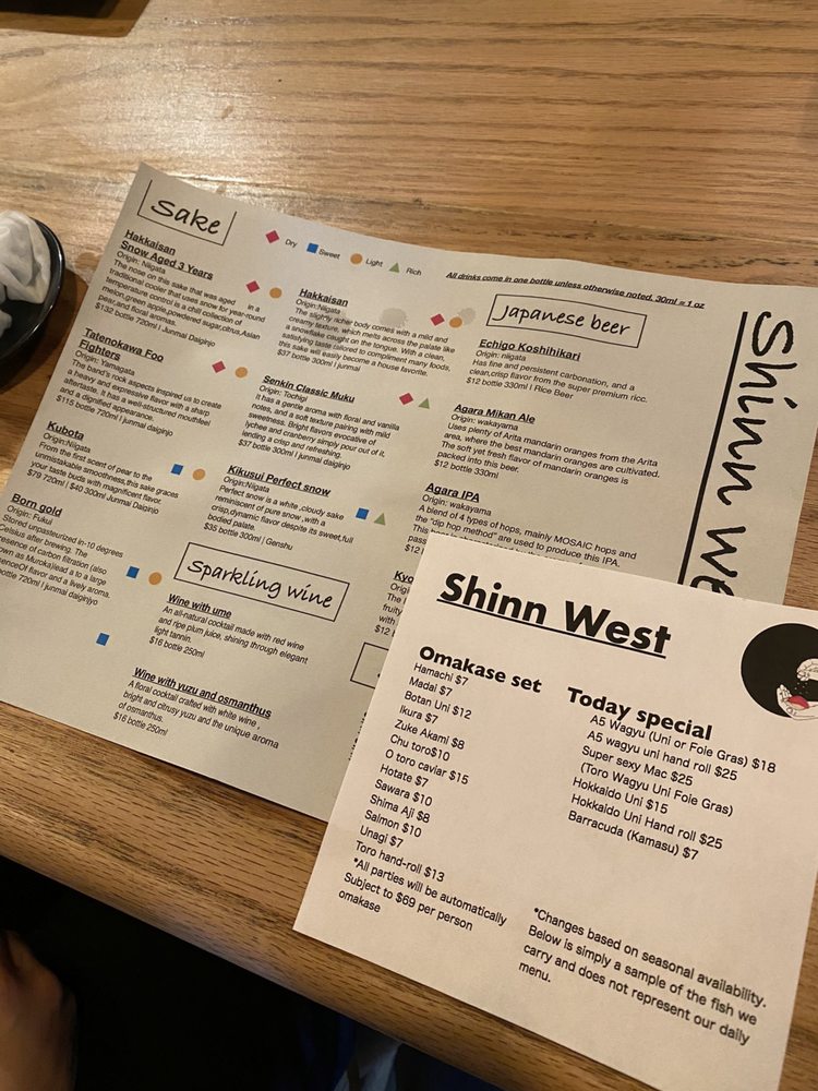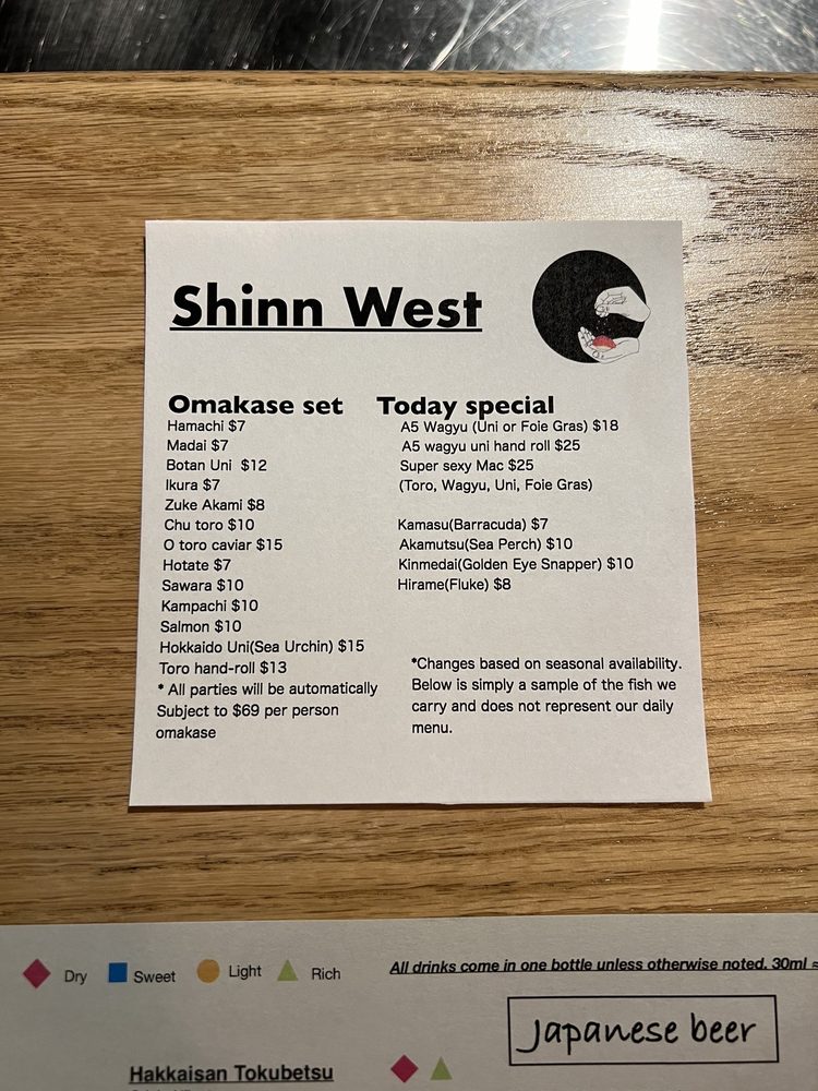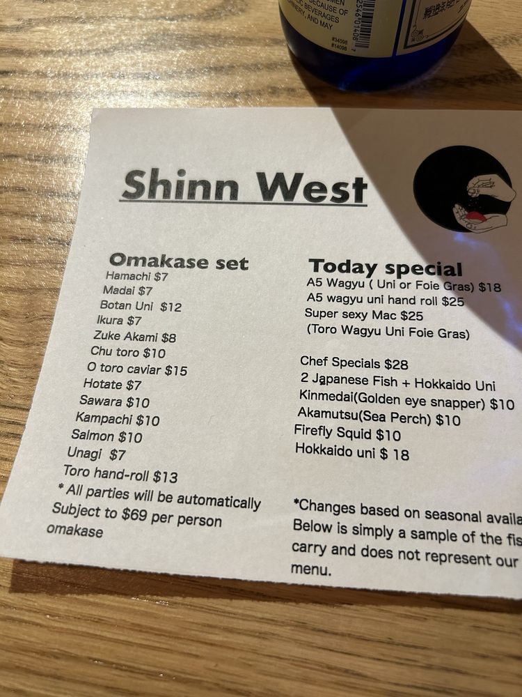 "Shinn West" is a top sushi bar located in New York, offering a wide variety of maki rolls, dons, and appetizers. Customers rave about the quality of the fish and the creative presentation of dishes, like the Toro Tartare and Caviar and Yellowtail Jalapeno. The ambiance is spacious and upscale, perfect for a date night or a special occasion. The omakase experience is highly recommended, with generous portions and intricate rolls that include caviar, gold flakes, and foie gras. The staff is friendly, knowledgeable, and quick to accommodate any requests. Prices are reasonable for the high quality of food and service offered. Overall, "Shinn West" is a must-visit spot for sushi lovers looking for a memorable dining experience in the heart of New York City.